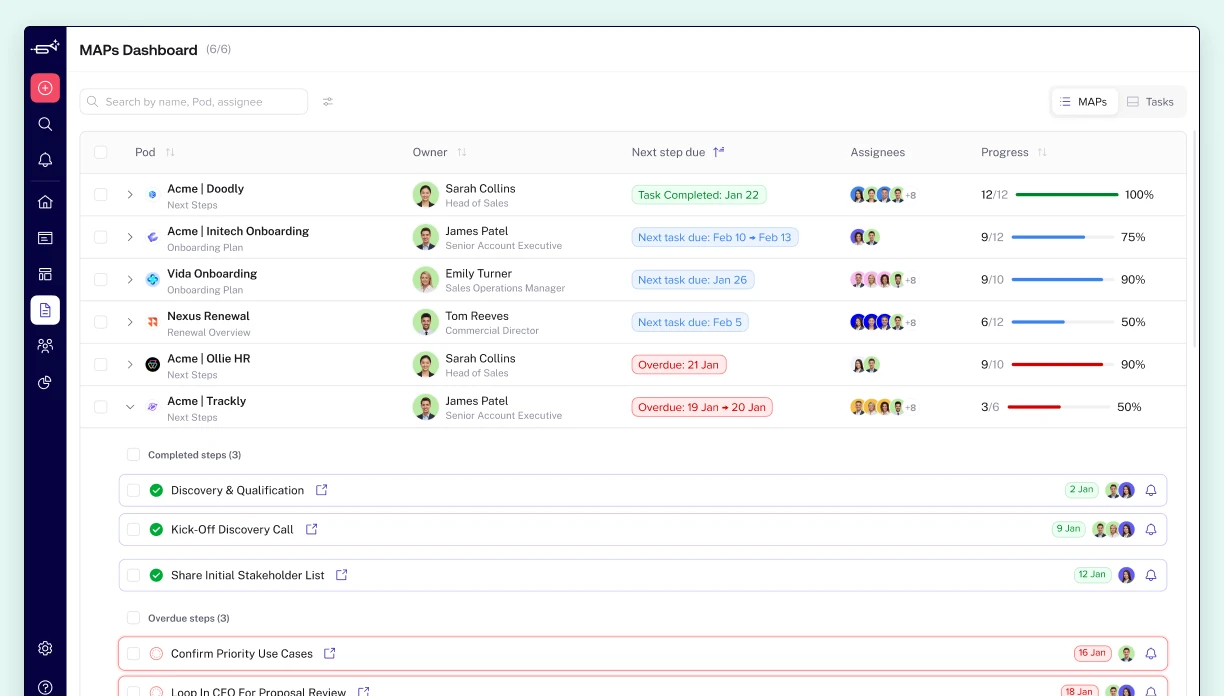 View all Mutual Action Plans across every Pod in one central dashboard.