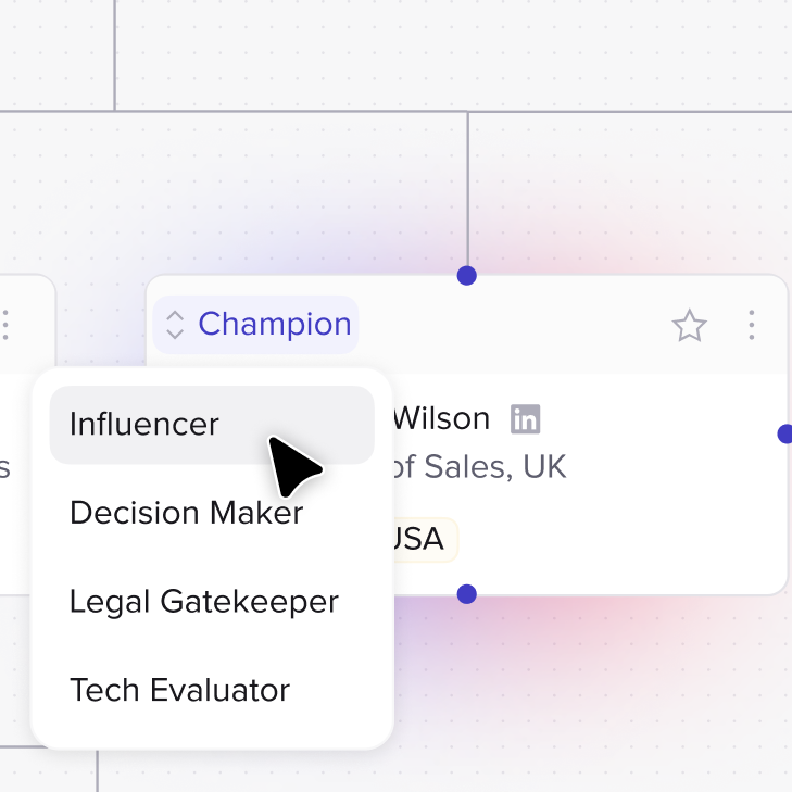 Organise your chart by role and stakeholder activity in 1 click, and surface individual engagement all powered by AI.